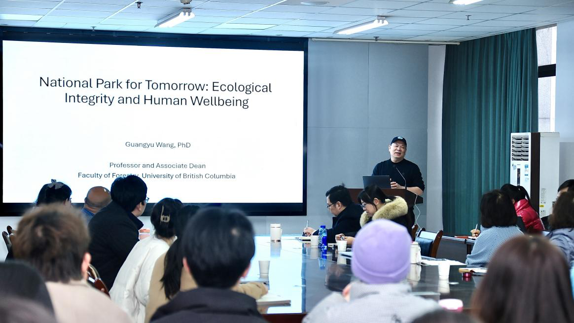 王光玉教授以“National Park for Tomorrow: Ecological Integrity and Human Wellbeing(国家公园的未来:生态完整性和人类福祉)”为主题,作了一场精彩的学术报告。他从国家公园的研究现状、当前面临的新兴挑战、创新研究方法及未来研究方向四个方面进行了深入阐述。王教授重点探讨了国家公园研究的理论框架,涉及自然保护地治理、空间管理与规划、环境解说与自然教育等领域。他还介绍了UBC国家公园研究中心的最新研究成果,包括国家公园游客的季节性问题、原住民与社区参与管理、森林火生态与火系统管理、国家公园生态系统弹性、遗产地管理、疫情对游客行为与设施的影响,以及生态旅游与森林疗愈等。基于这些研究,王教授探讨了中国在国家公园研究与管理中可以借鉴的经验与未来发展方向。
