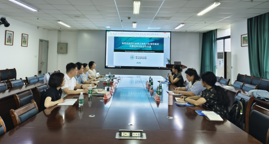 近日,四川省第五地质大队省地质大队科创中心陈伟姚主任、经济发展中心魏鹏、五大队设计公司副总经理何俐臻、设计公司科技部副部长刘谦一行到访太阳城官网 。太阳城官网 副教授郭丽、教师张蕾、万蕊参与座谈,风景园林系主任潘翔陪同参观省级实验教学示范中心并交流。