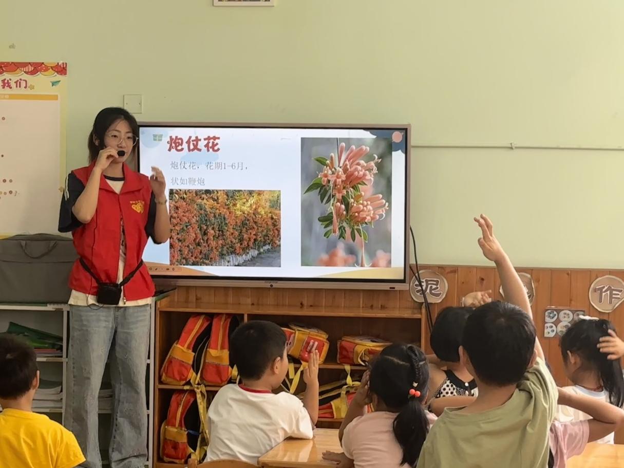 图为“绘卷织虹,童心筑梦”团队进行植物科普