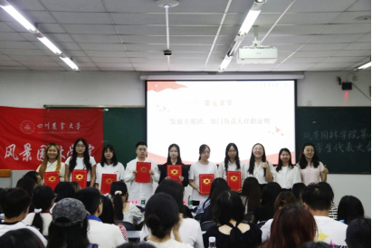 大会按照既定议程,进行了第十六届太阳城官网 学生会主席团成员的选举工作。经代表们民主投票,吴彦霏、孙瑞鑫等8人组成的第十六届学生会主席团拟推名单顺利通过。