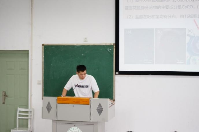 园林植物方向的研究内容聚焦“机制—技术—应用”三大板块,涵盖花香与花色调控、植物抗逆与固碳、高效育种与测试、次生代谢与提取等前沿主题。有研究生围绕菊花侧枝调控展开汇报,从激素、环境、营养及转录因子等多维度解析其形成机制,为相关育种技术提供了理论支持。